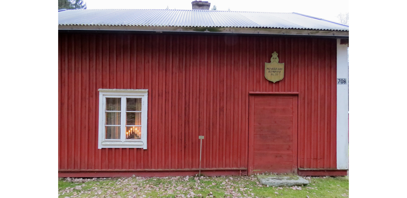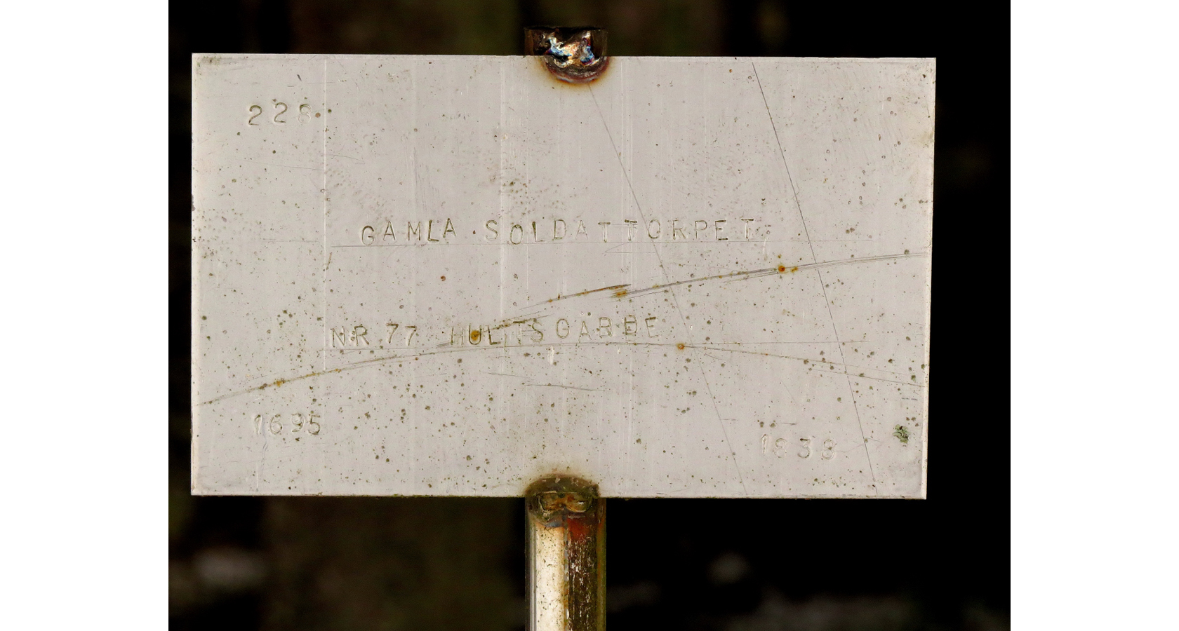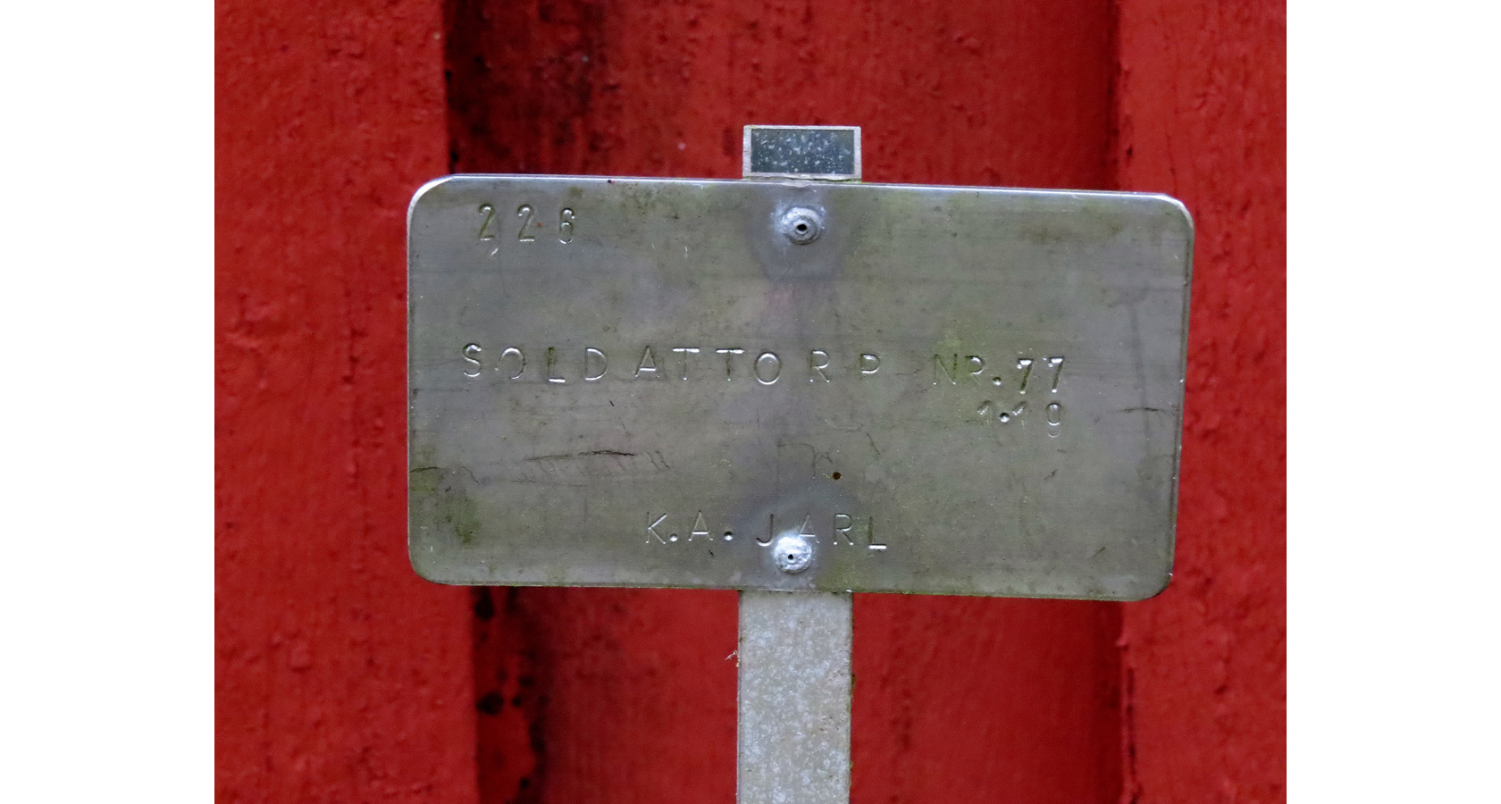 Den lilla metallskylten säger, Mo härads kompani, soldattorp nummer 77, Stora Löffällan 1:19