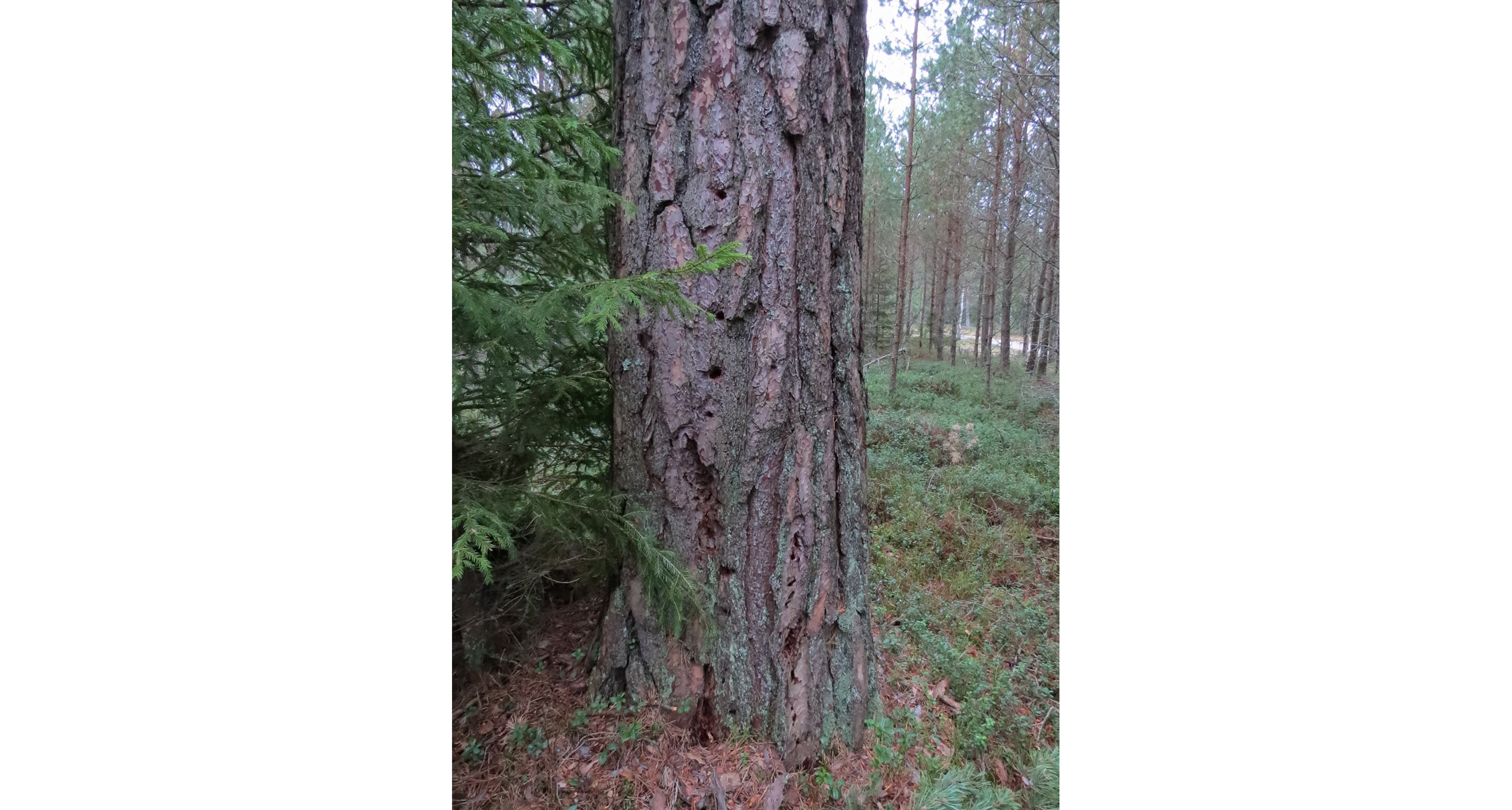 Kanske är dessa hål i tallbarken gjorda av den sällsynta reliktbocken, en art som finns i så gott som hela landet, och med en utbredning från Blekinge till Lule lappmark men antalet lokaler i Sverige uppskattas till bara omkring femhundra.