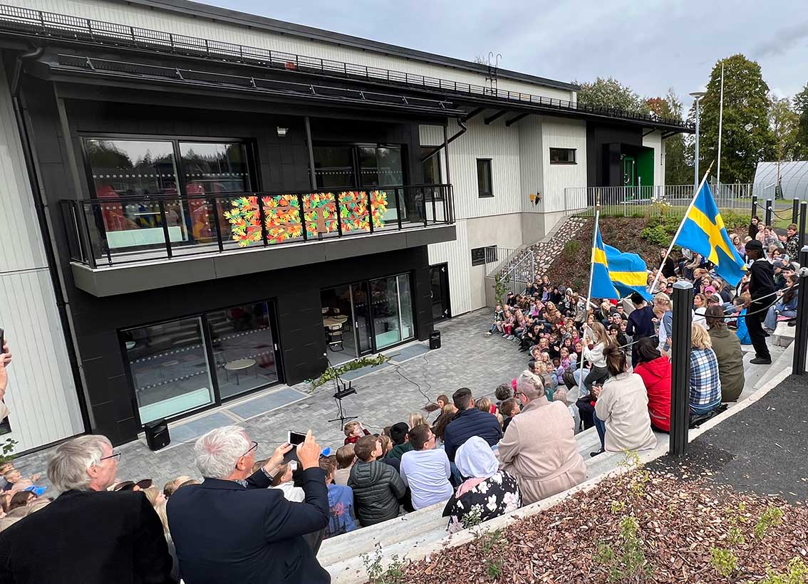 Provtagning genomfördes av entreprenör genom inhyrd expertis och klartecken gavs om att påbörja grundläggning. Första spadtaget togs i början på juli 2021. Övriga åtgärder för att åstadkomma skydd och förhindra att det flyktiga ämnet trikloretylen i gasform når in i byggnader har vidtagits och även dricksvattenledning till nybyggnaden har utförts i ett tätt och säkert material anpassat för ändamålet. För att kontrollera att halterna av trikloretylen i marken omkring skolan har det i bygglovet villkorats att det i förvaltningsskedet ska göras regelbunden provtagning av grundvattnet. Denna provtagning kommer göras av tekniska kontorets fastighetsenhet med hjälp av personal från VAenheten. Provtagning sker enligt provtagningsprogram i förberedda hål och med särskilt anpassad utrustning. En kort tid innan utsatt tid för slutbesiktning hösten 2022 inträffade en stor och omfattande skada då en koppling på en varmvattenledning lossnade och varmvatten strömmade ut under cirka ett dygn. Entreprenören var snabbt på plats och åtgärder vidtogs omgående. Ett omfattande återställningsarbete startades upp och gav oss en del merarbete, främst på grund av att vi fick ordna fram ersättningslokaler för de elever som var på väg att flytta in i den nya skolan. All hantering av detta har gjorts gentemot alla inblandades försäkringsbolag och Vaggeryds kommun ska som beställare och byggherre inte får några extrakostnader med anledning av denna skada. Återställningen har skett med stor noggrannhet och inblandade entreprenörer har gjort sitt yttersta för att avlämna en helt felfri produkt vid slutbesiktningen. Tekniska kontoret har även haft egen extern specialist på plats för att följa och dokumentera arbetena. Skolan kunde starta upp sin verksamhet höstterminen 2023 och en formell invigning hölls den 25 september.
