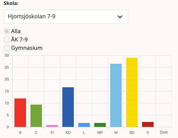När skolvalet genomfördes på Hjortsjöskolan i Vaggeryd röstade 81,4 procent av eleverna