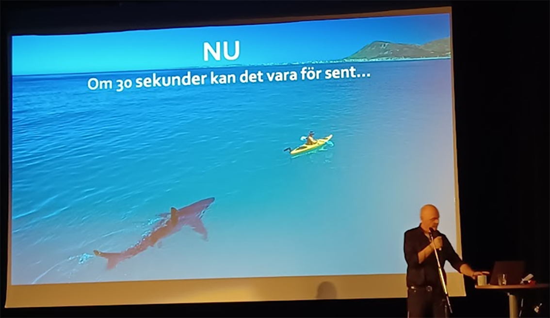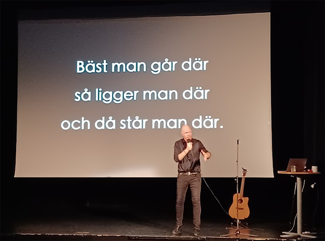 Jacke predikade om hur viktigt det är att leva i nuet. Efter föreställningen log publiken stort och en röst uttryckte ”att detta behövde jag” och pekade på sin nygipsade arm.