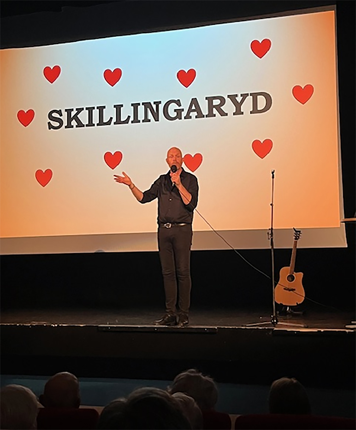 Att få folk att skratta är något av det finaste som finns, säger Jacke Sjödin. Och skrattade gjorde publiken när han gästade Skillingehus i Skillingaryds Teaterförenings arrangemang.