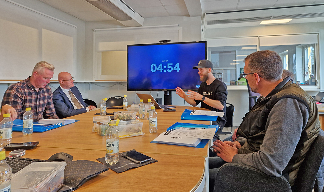 Ett övergripande dagsschema delades ut och Linda Falkboman var tydlig: ”håll tiderna”. Stefan Falkboman förklarar: – Två lag kommer till er på förmiddagen och två på eftermiddagen. Hos er avgörs tävlingsmomentet. Hela upplägget börjar med att ni har 15 minuter med varje lag, ni får disponera tiden hur ni vill men enkelt förklarat – berätta om ert företag. Därefter delar ni ut uppdraget. Ungdomarna har en timma och fem minuter på sig att lösa uppdraget. Presentationen ska vara tre minuter och följas av några minuters frågestund. Det är snabba ryck och vi får inte dra över tiden någonstans. Det är viktigt att ni följer tidsschemat över dagen, vi har en klocka som direktsänds med nedräkning som ska hållas.