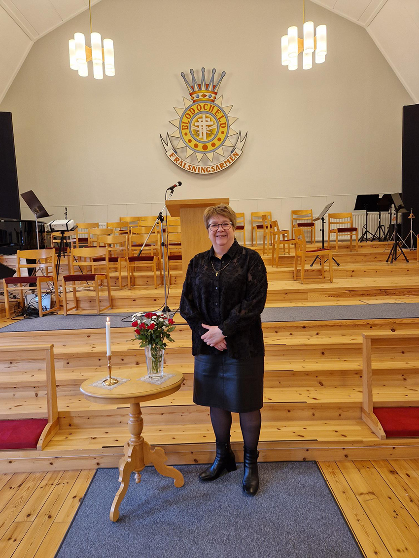 Även mötesbesökarna var delaktiga och det blev en mäktig församlingssång när alla stämde in i "Till härligheten höjder, i tron jag ställt min färd..." och "O jag vet ett land bortom havets vreda brus", med kören som börjar med orden, "Underbara land...." Båda dessa står under rubriken -Framtiden och hoppet- i Frälsningsarméns sångbok.