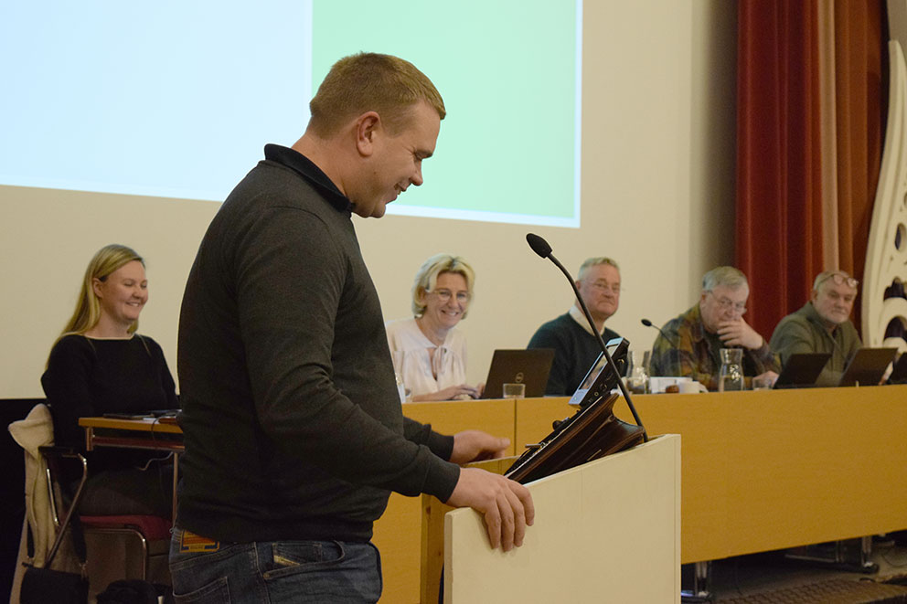 Under måndagens kommunfullmäktige var det dags för slutligt beslut. Här tog Olof Sjöholm (C) ton i talarstolen först av alla.