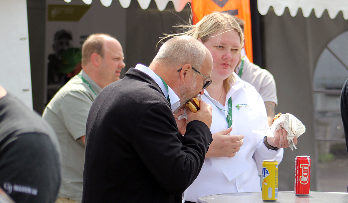 Henrik Weinerling från Bondstorp är säljare och även om det varit hektiska dagar ser han lugn och nöjd ut vid lunchtid. – Ja, nu känns det riktigt bra, säger Henrik och berättar att i och med dagens invigning har SMT tre försäljningsställen i landet. Här når vi hela södra delen av landet, samt delar av Danmark, inom en 30 milsradie och läget är perfekt strax intill E4:an. Vi har begagnade entreprenadmaskiner och är specialiserade på bergborrutrustning, generatorer, kompressor och energilagringssystem bland annat mobila enheter, mobila solceller ock så vidare. Lantbruket kan bli en kund framöver då vi säljer reservkraft som är viktigt att ha när allt blir automatiserat. Vi har en Cirkus som kund som behöver tillfälligt mycket mobil el men även stora företag som Amazon som bygger ett stort energilager.