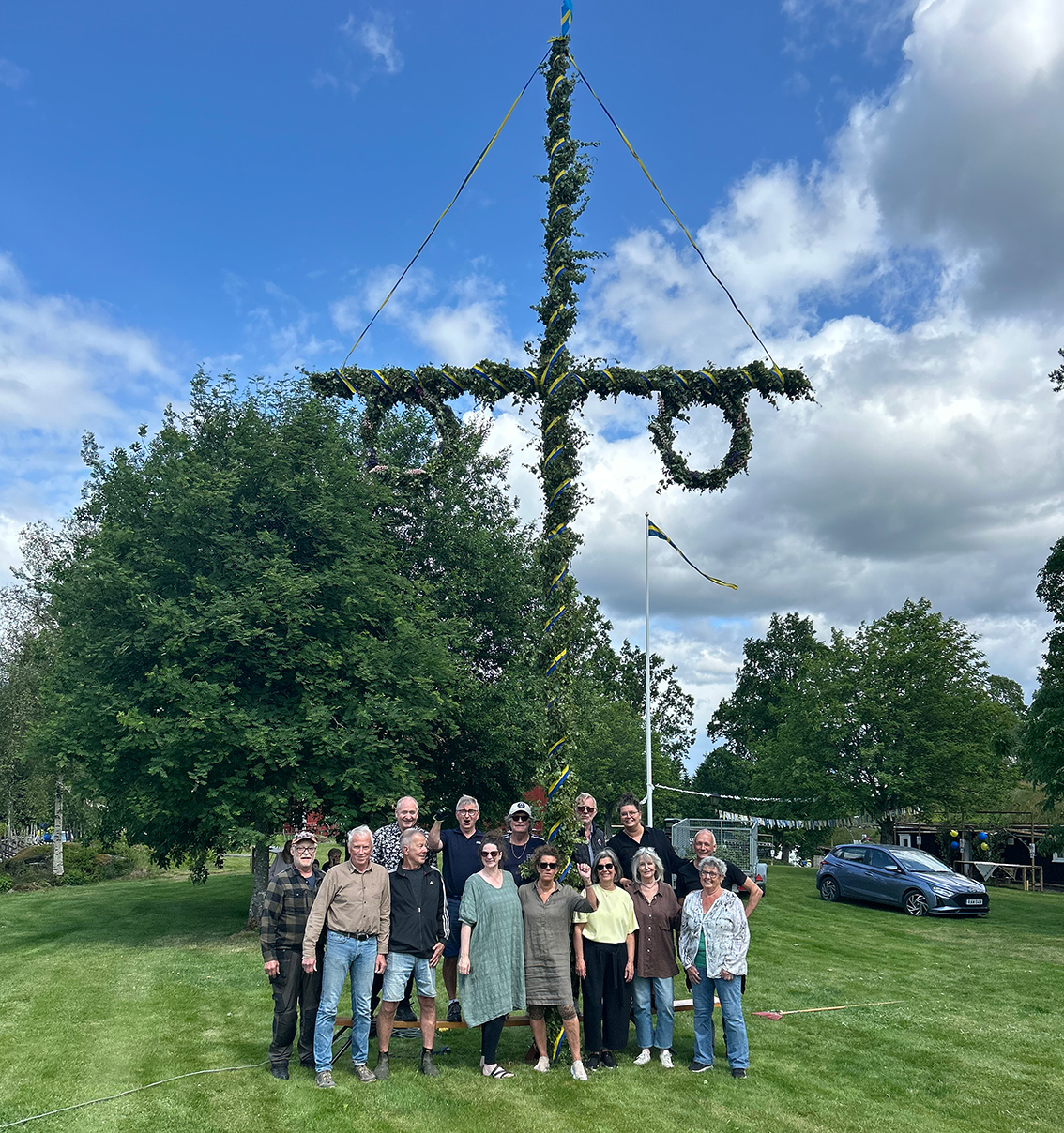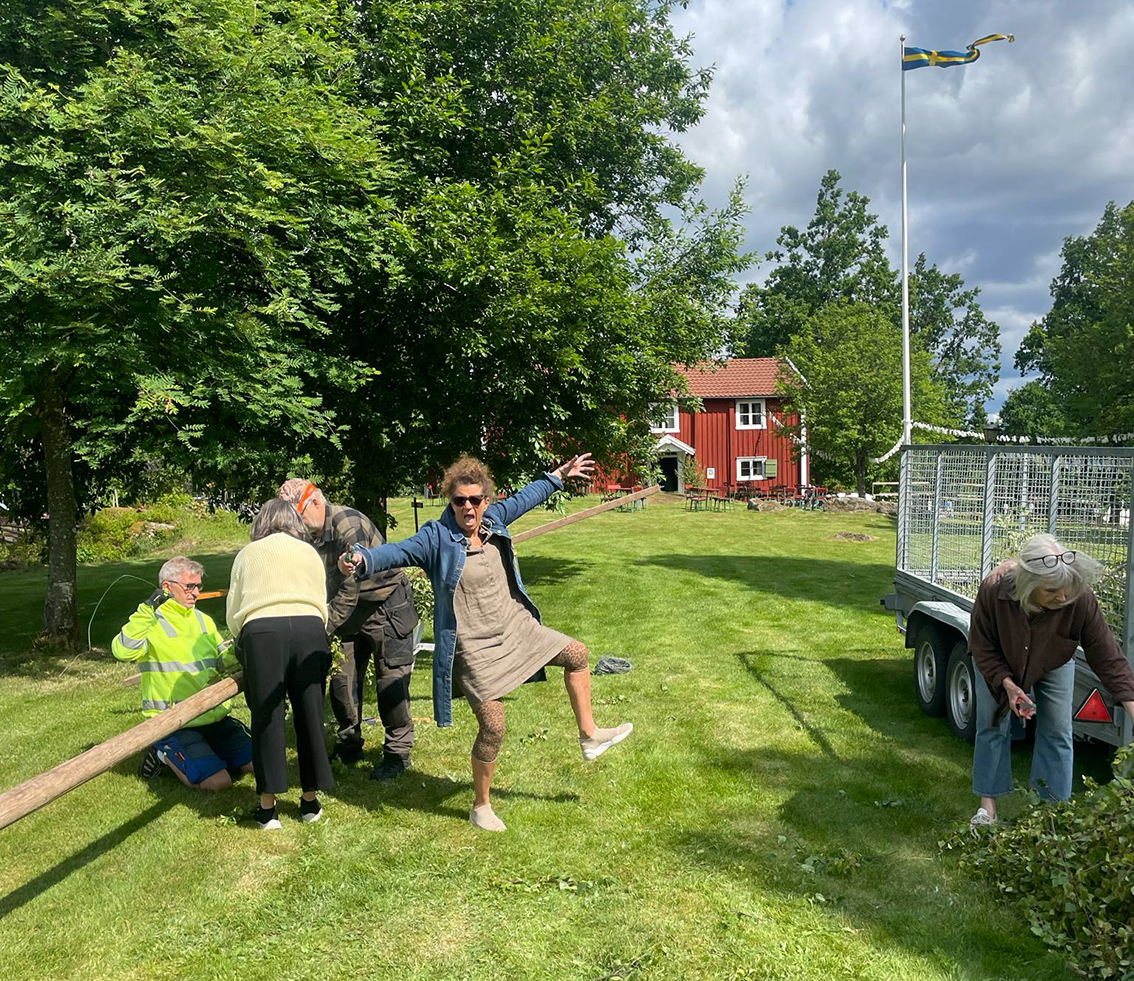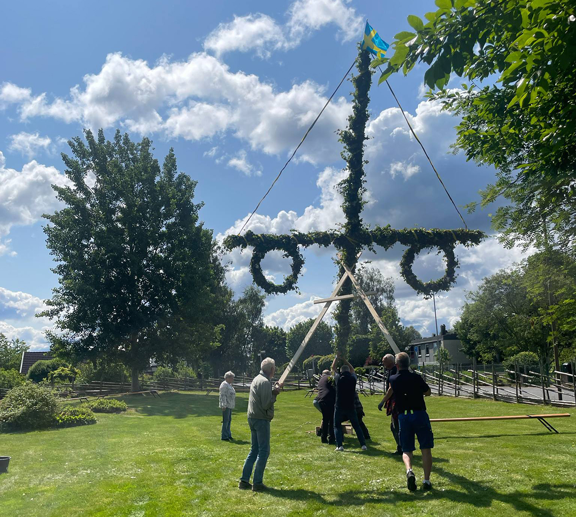 – Vi har haft en härlig dag i parken med midsommarpyssel och glada förberedelser – och nu står midsommarstången stolt rest och redo för morgondagens firande.