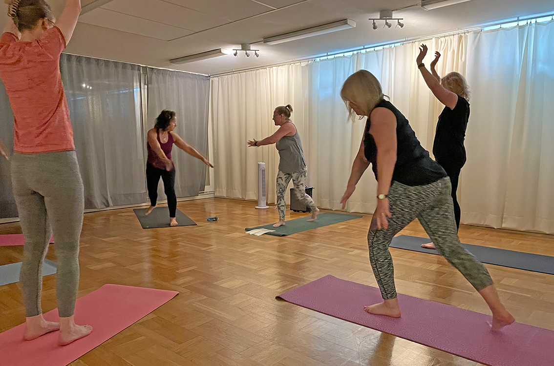 – Vi är tre instruktörer som kör yoga här just nu och alla har hållit på med yoga i många år och är utbildade. Och vi har olika inriktningar i våran yoga så det finns något för alla.