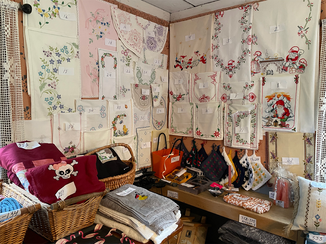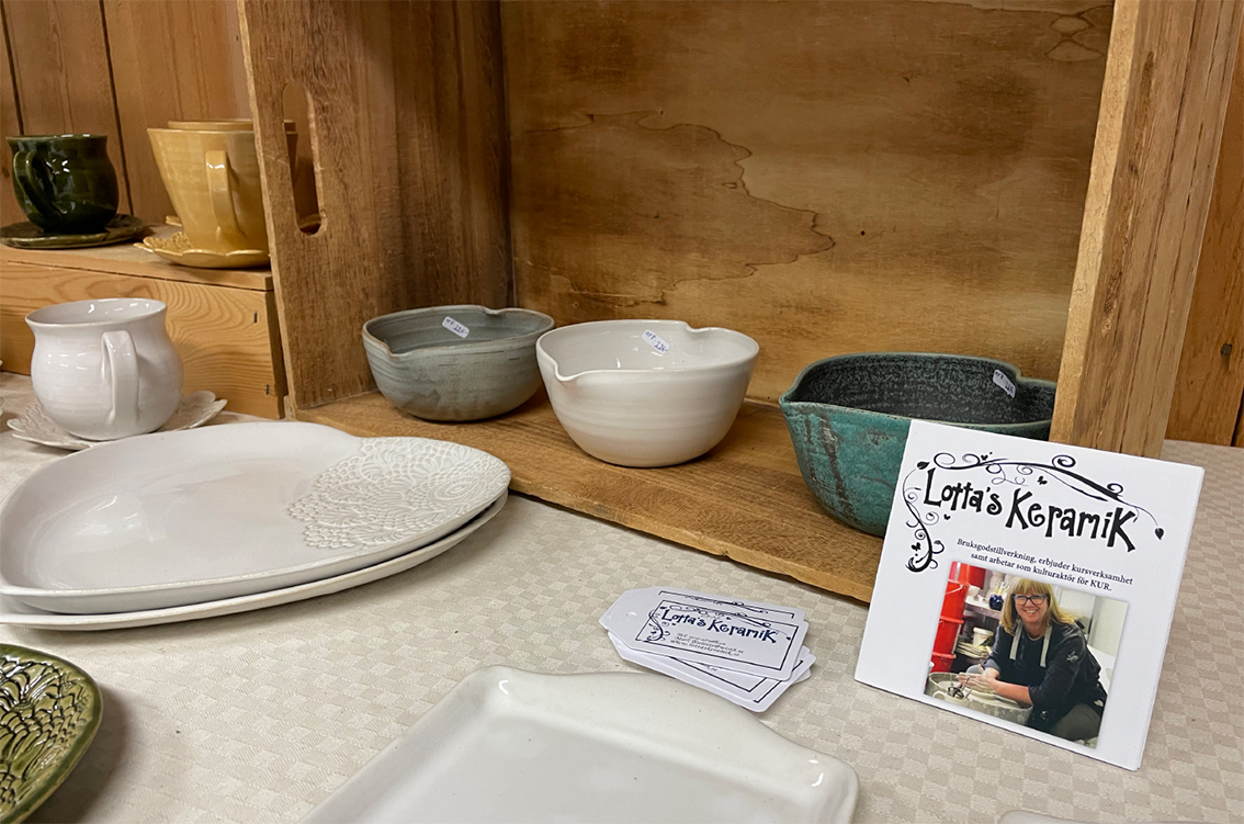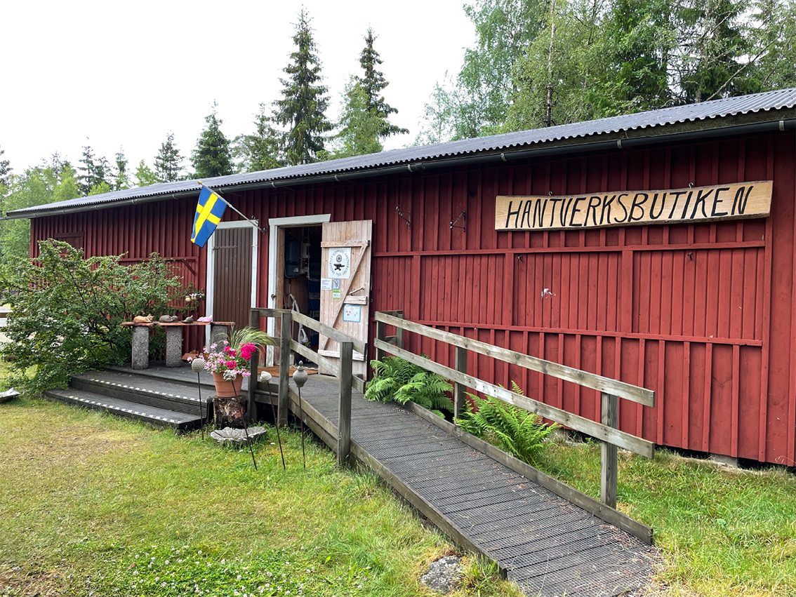 Hantverksbutiken är öppen alla dagar fram till slutet av augusti. Där samsas hantverkare av olika slag och säljer keramik, stickat, salvor, honung och annat trevligt.
