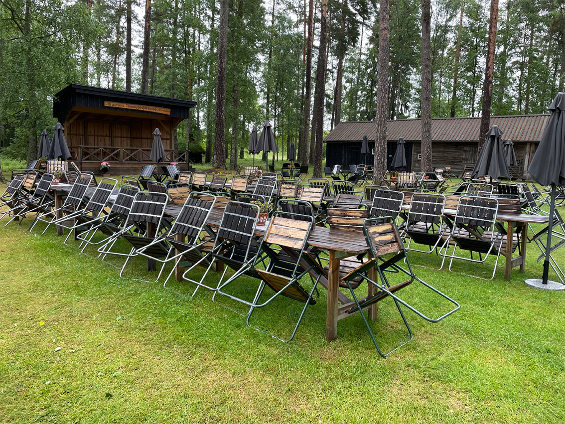 Just den här dagen som jag var på besök regnade det hela förmiddagen och antalet besökare var inte så många. Men det går faktiskt att åka dit även om det regnar. Inne i huset är serveringen öppen och i det lilla rummet där lotteriet finns sitter det alltid någon glad dam från damklubben.