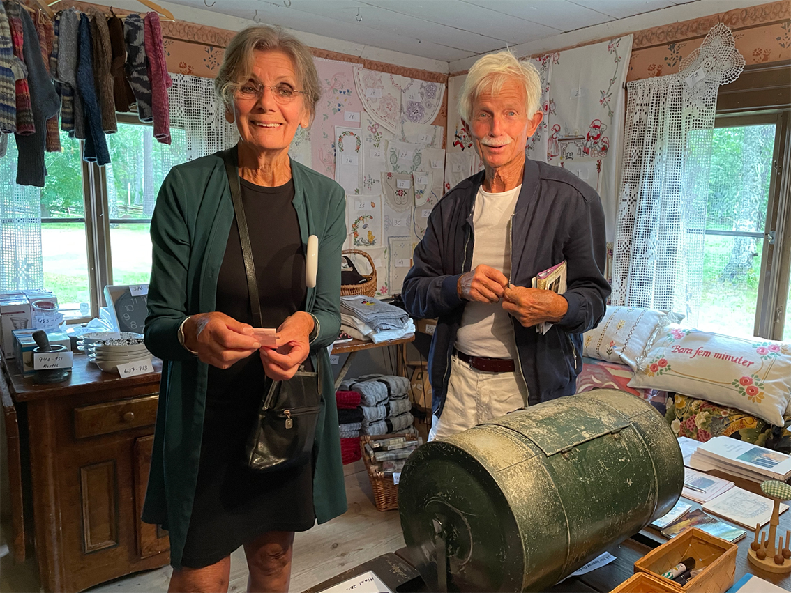 I dag är det Inga-Maj Jonsson som säljer lotter och också hon som står för lotteriet. Här finns många lotter att köpa och 1 800 vinster. Allt från prydnadssaker, bonader, stickat och husgeråd finns att vinna.