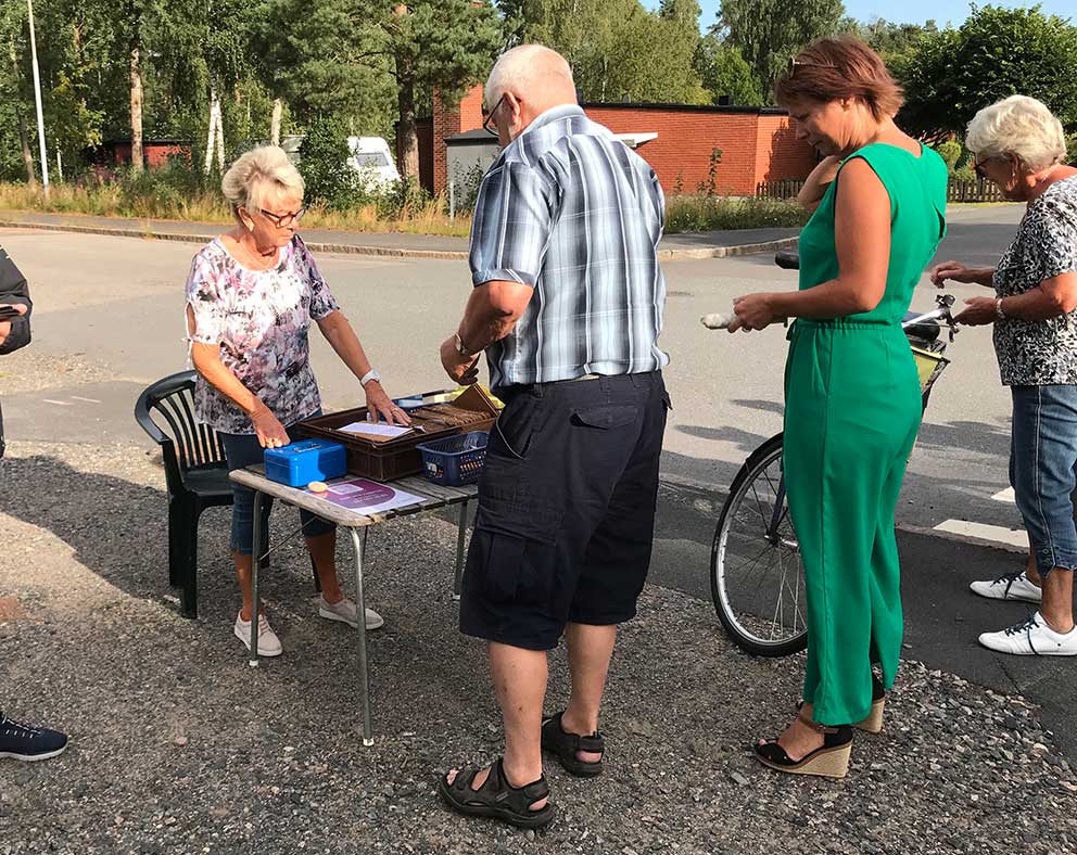 Gårdagens tur inleddes på Badplatsvägen och det var inte för att de som höll i det bor på den gatan utan för att det är där man brukar starta. Det är alltså på Torbo i Vaggeryd. Thore Ohlsson var tipsanvarig och hustru Birgitta såg till att alla som kom fick köpa ”entré” och annat om hörde till.