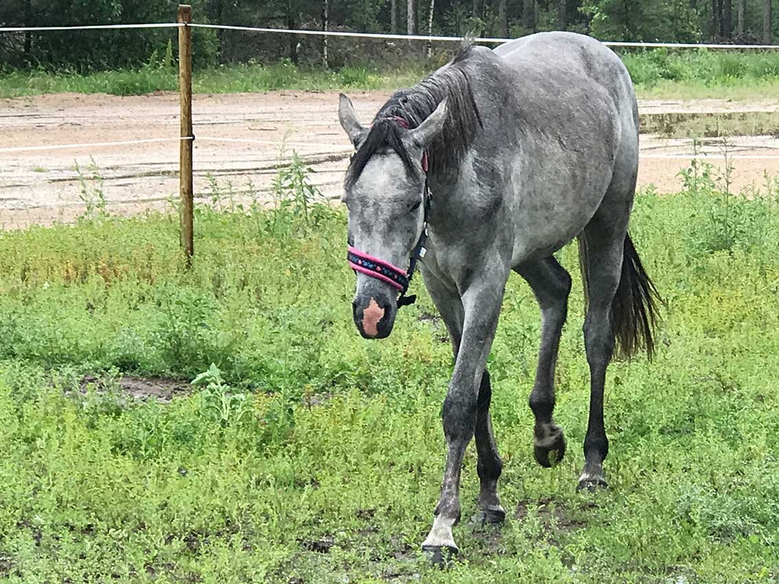 Uffe och den andra hästen var på bete ett stycke från gården Ekholmen där Malin och hennes syster Sara har sitt stall. När Malin skulle utfordra hästarna fick hon plötsligt se att de tagit sig ur hagen och hade vandrat ut på en mosse.