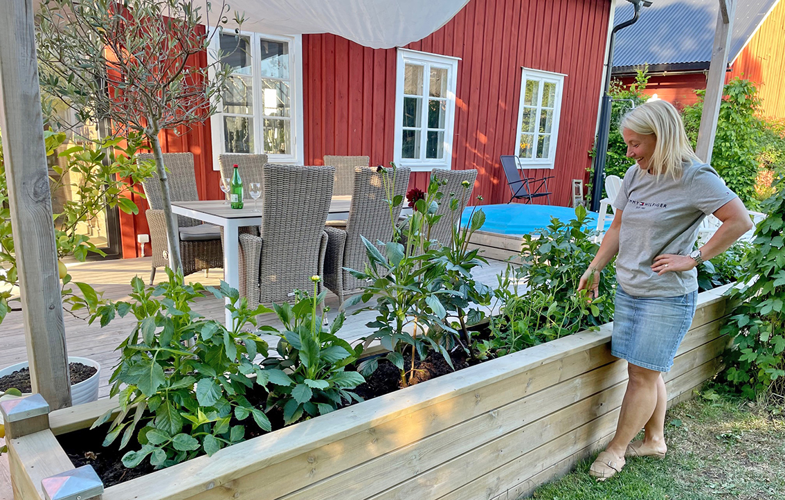 Lena Hultman som gillar att greja i sin trädgård