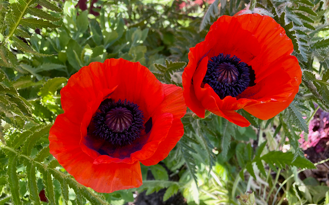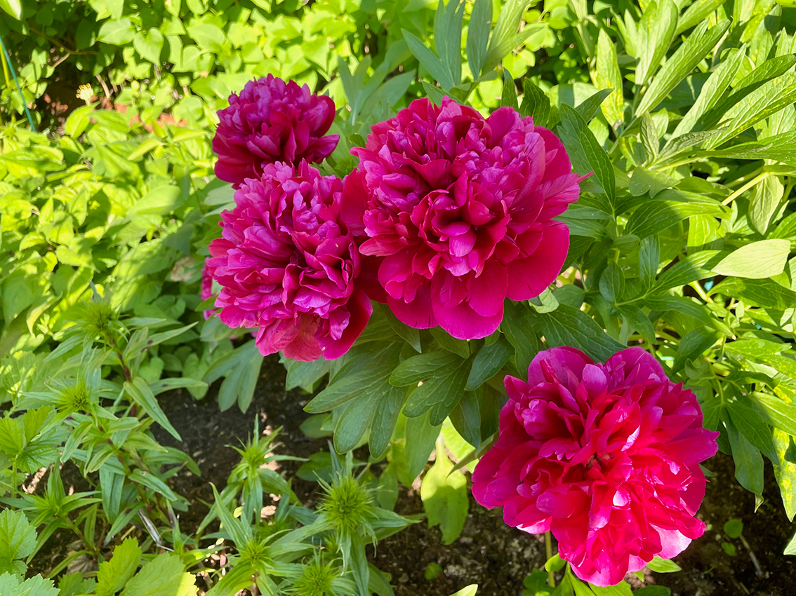 När jag var på besök en ljummen och solig junikväll blommade pioner, vallmo och de första dahliorna hade slagit ut. Under den lummiga lönnen slog vi oss ner med ett glas kall äppelcider innan vi strosade runt i det gröna. I den här trädgården kan man inte annat än att trivas.