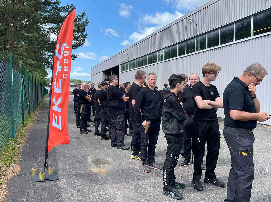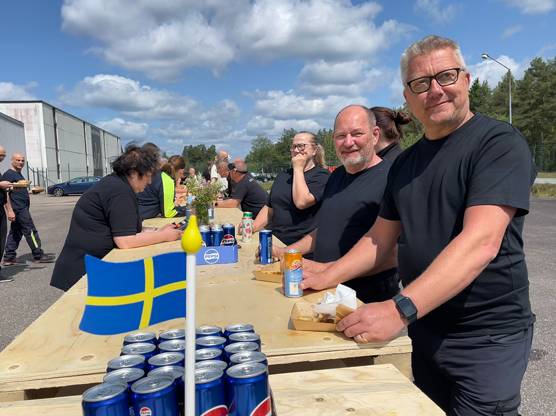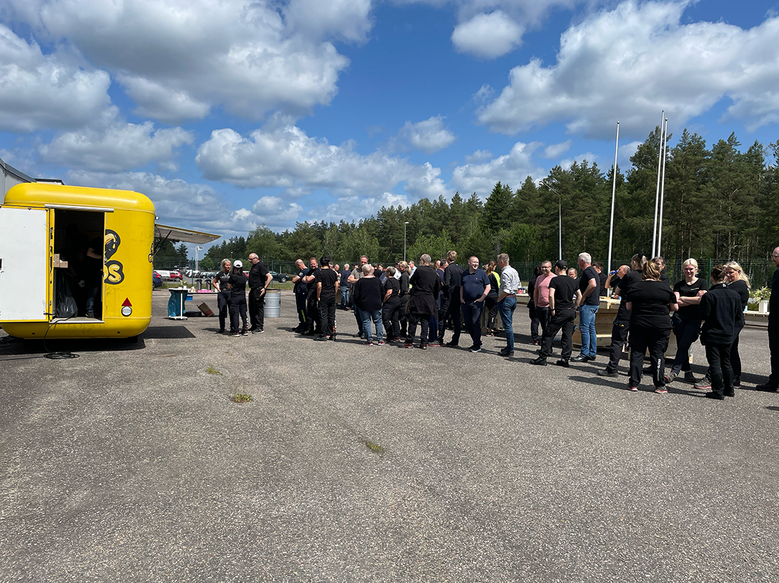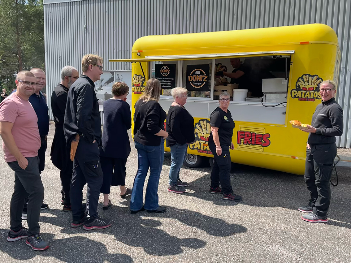Det går bra för Ekets Uppåkra med en hög orderingång och ett bra resultat, det ville företaget fira. Vädret visade sig från sin bästa sida när foodtrucken serverade hamburgare till alla industriarbetare på onsdagen. Det körde ihop sig lite i början när förlängningskabeln till elförsörjningen gick sönder, men det fixade underhållskillen Elias så alla fick sitt käk.