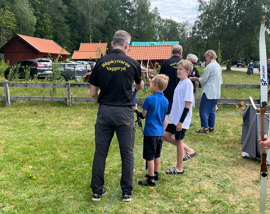 Vädret kunde ju inte varit bättre den här dagen när de gamla stallarna fylldes med försäljning och hantverk av olika slag. Bågskyttarna Vaggeryd erbjöd prova-på bågskytte och där fanns även korvgrillning. Arrangörer var Åkers byalag.