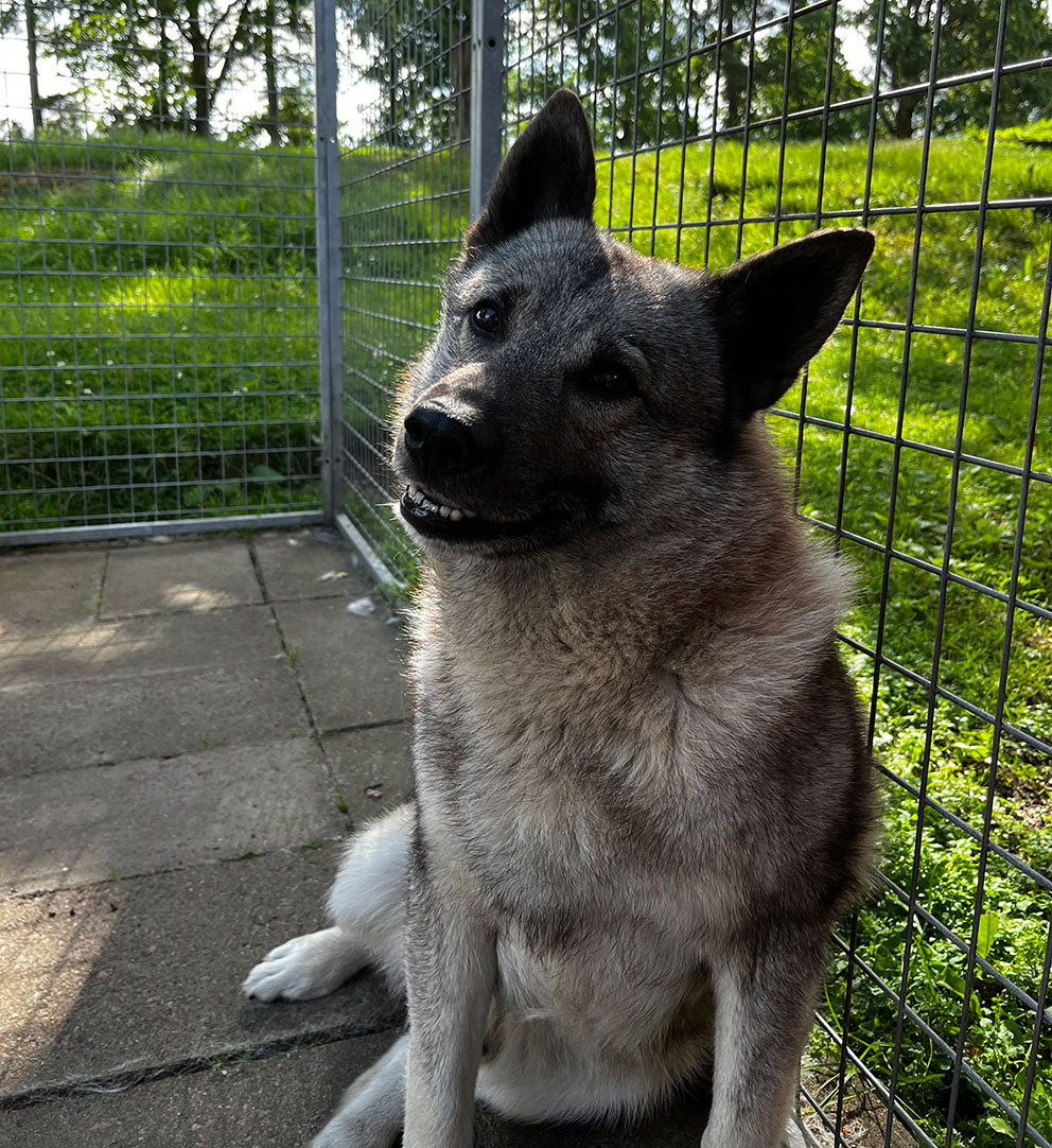 Gråhunden Willy 6 år, bor i Sölje utanför Värnamo