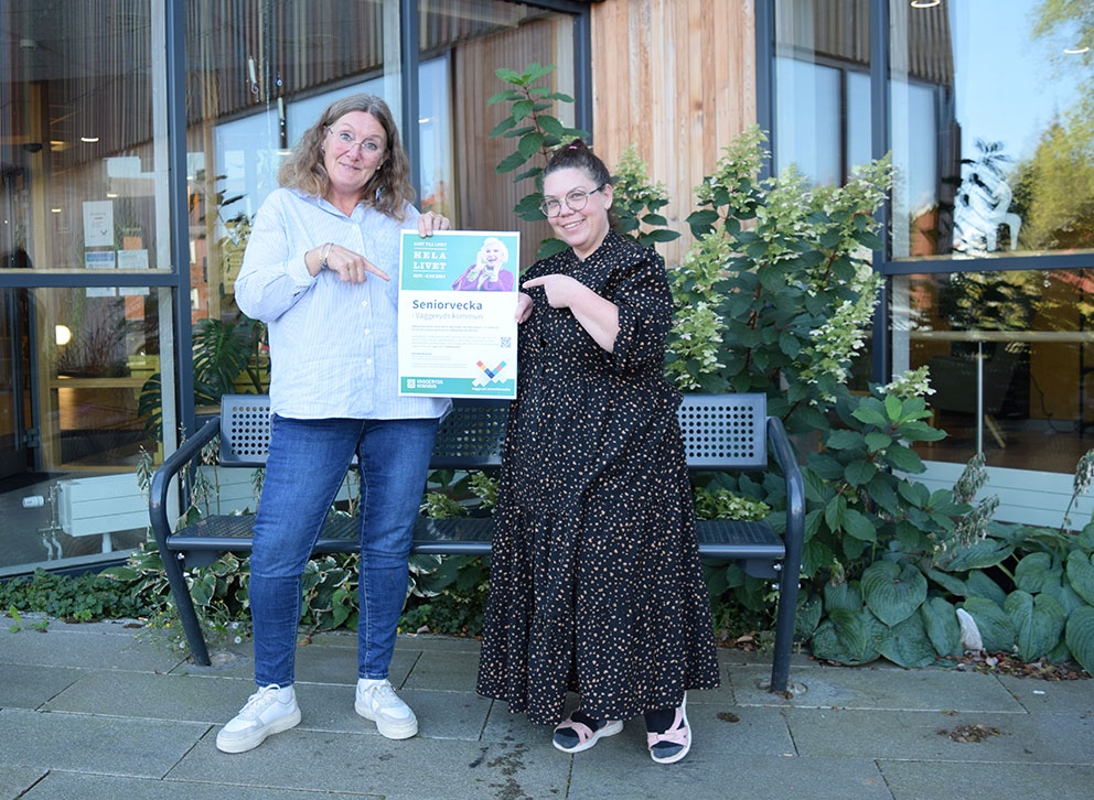 Äldresamordnarna Anita Jonsson och Maria Jigåker välkomnar alla 65 plussare till årets seniorvecka med start nästa måndag. – Våga åk över Dulebäck, hälsar Jonsson/Jigåker