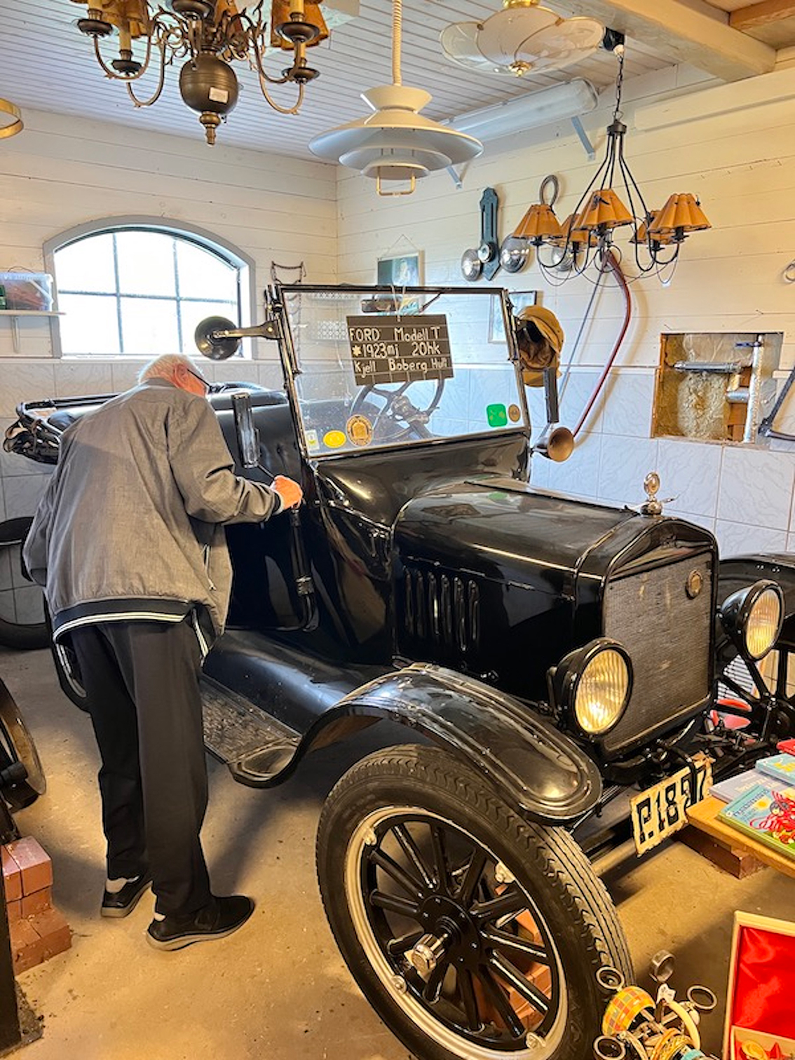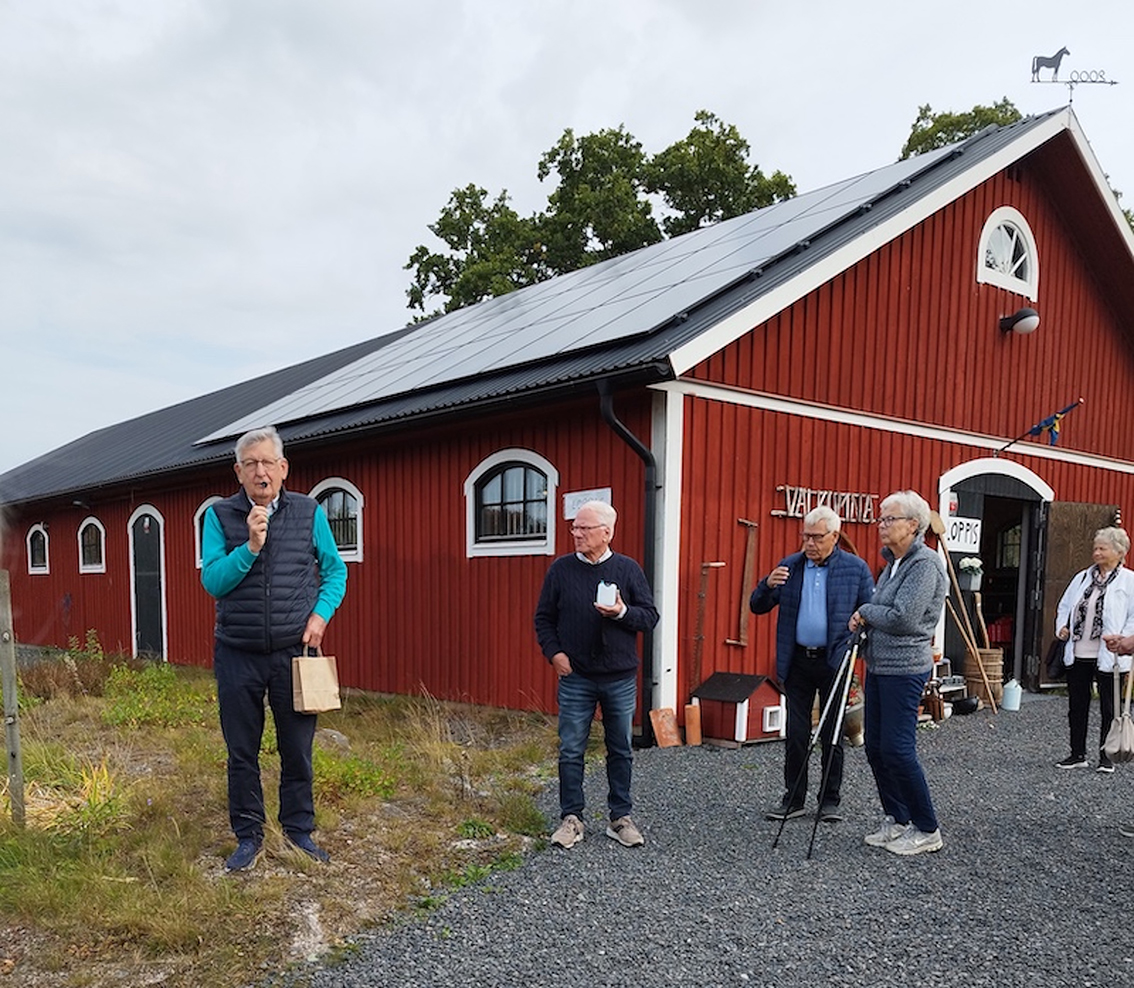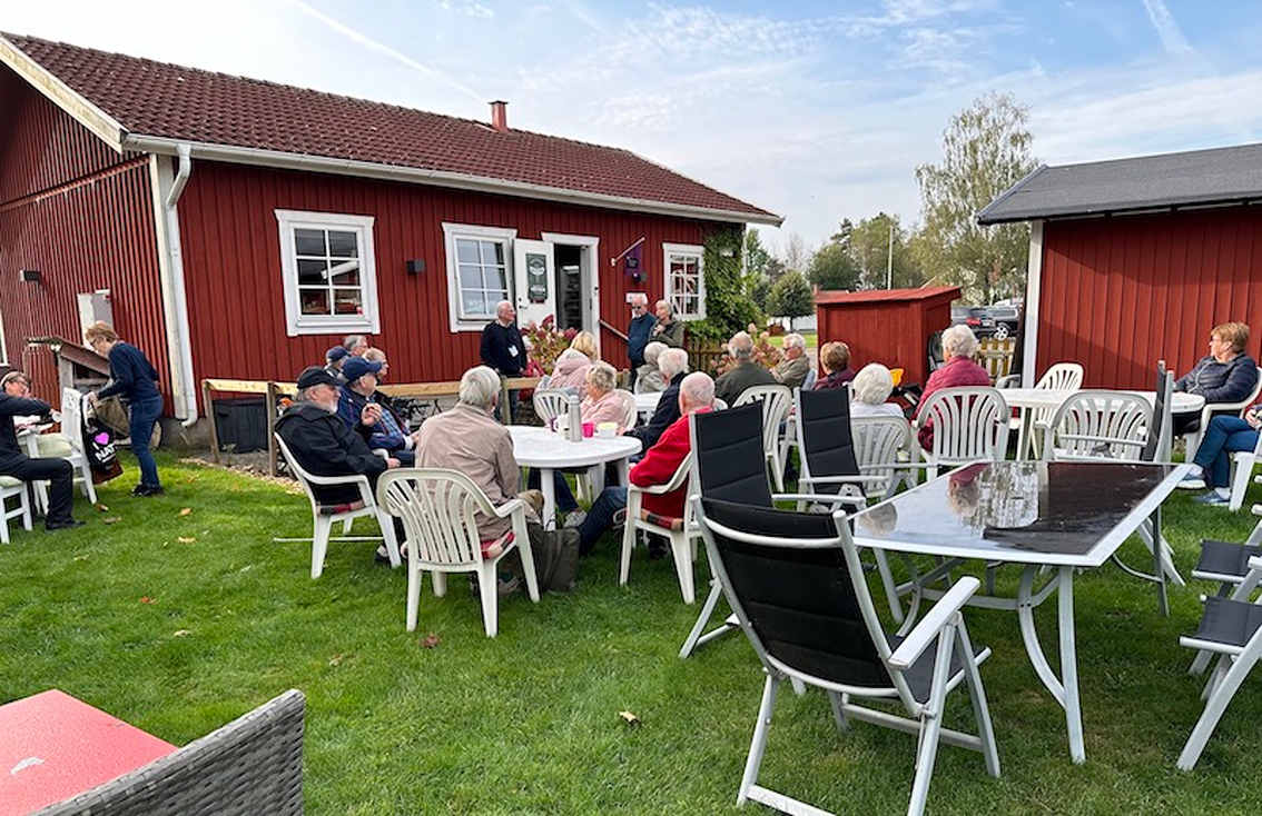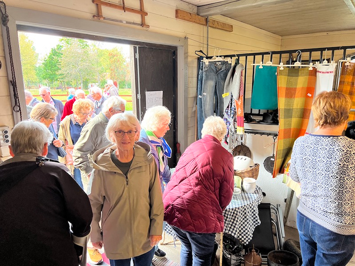 Bussfärden fortsatte förbi Starkeryd och Tallnäs och vidare till Kjell och Ann Bobergs välrenoverade gård, Västergården i Hult. Här besågs både Kjells fina antika bilar och Anns intressanta loppis.