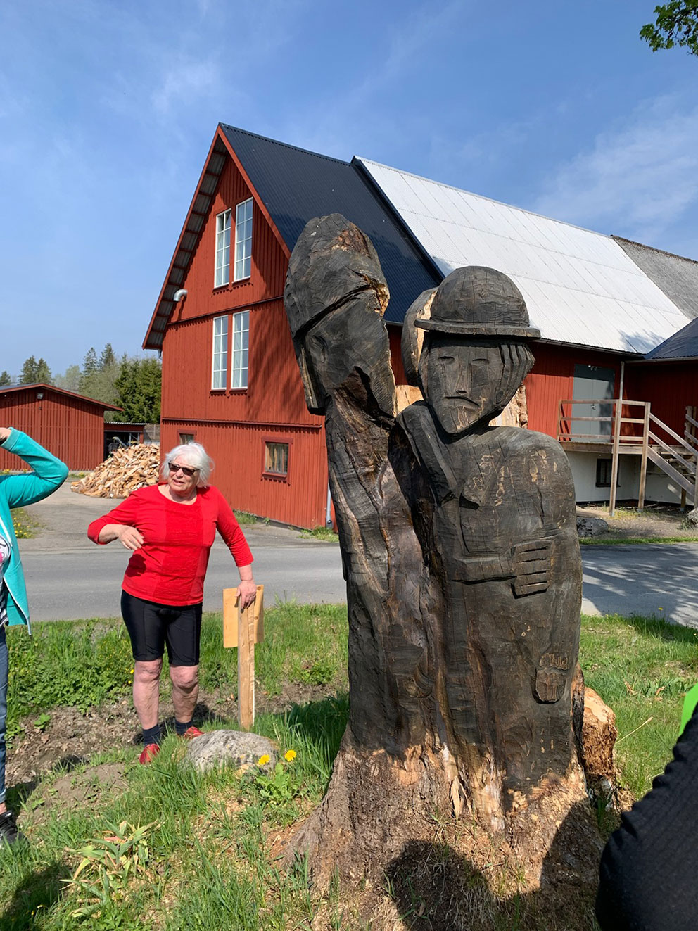 Skulpturen som visade för cyklande SPF:are är gjord av PO Toftgård 2022 och gjord av en halvrutten lönn, motorsåg och någon vinkelslip.