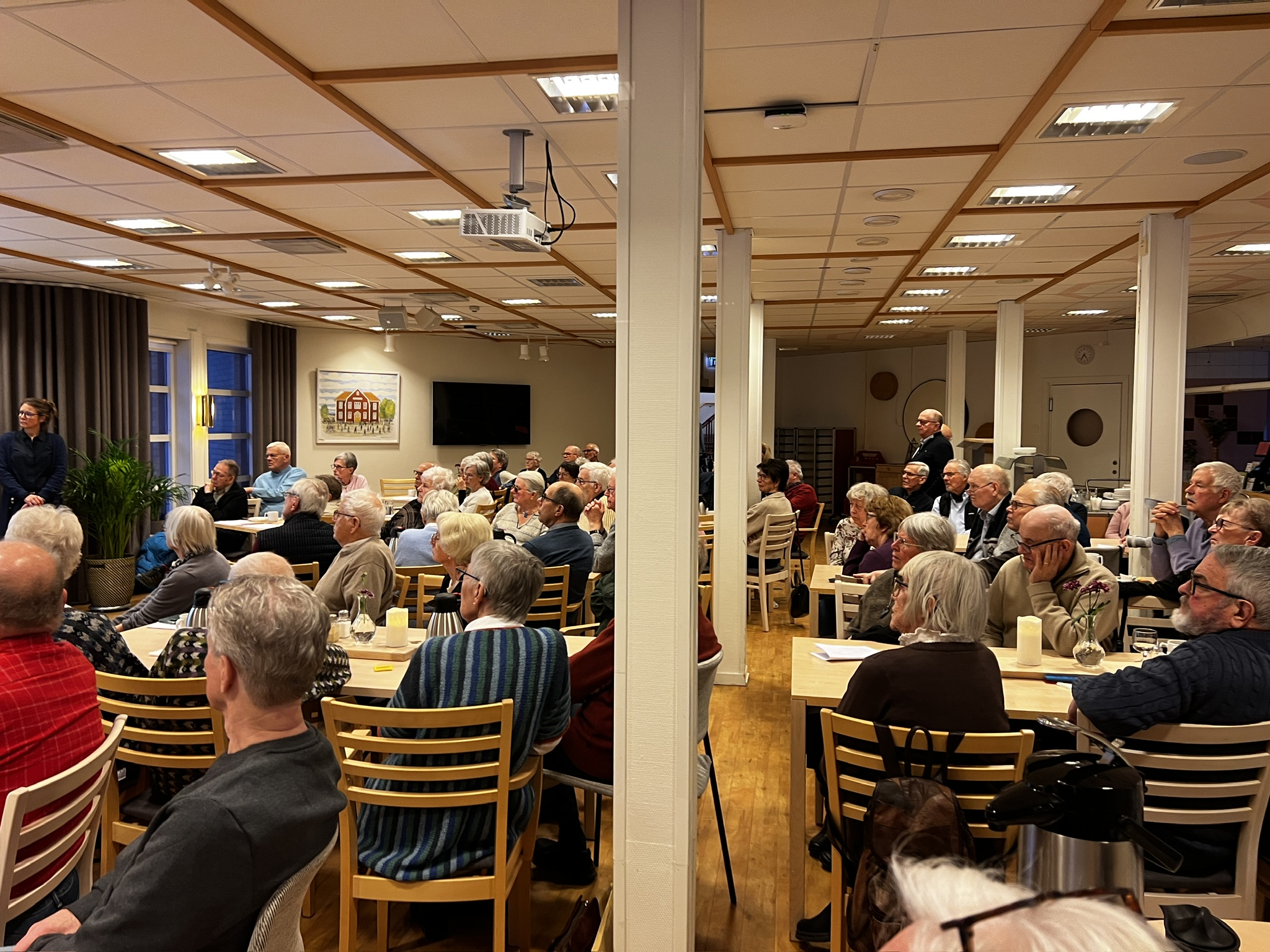Linnéas personal serverade en utsökt räksmörgås till kaffet och därefter blev det en intressant kommunal information. Ekonomichef Camilla Holm och personalchef Anna Yström informerade om befolkningsutvecklingen i kommunen, ekonomin och kommande investeringar. Förändringen för Skillingehus presenterades. Stadsarkitekt Behnam Sharo redogjorde för fysisk samhällsplanering med pågående detaljplaner för olika ändamål, villatomter och områden för industri.