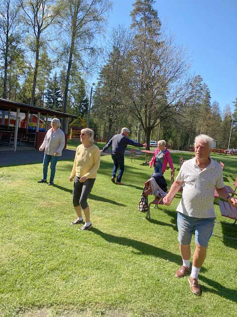 I små grupper finns möjligheter att göra enkla rörelser till musik, prova på boule, frisbee eller bara träffas och gå en tipspromenad.