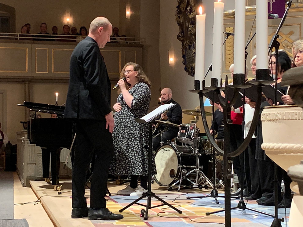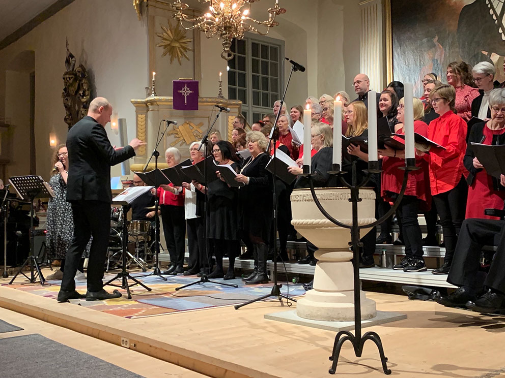 Håkan Sparf var ledare för kören under adventskonserten i Svenarums kyrka i söndags. Tillsammans med sångsolist Jill Svensson bjöds det på stämningsfull konsert.