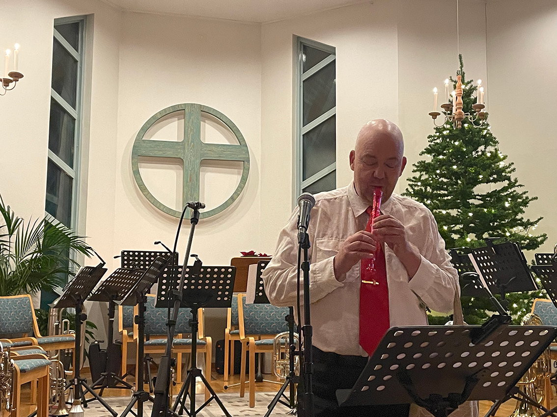 Mats Sandberg spelar egentligen bastuba men kunde även spela flöjt.