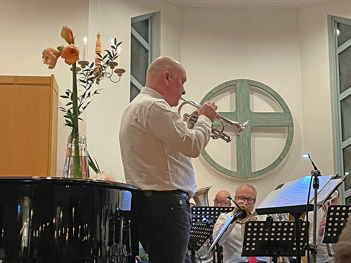 Peter Blomqvist är ledare och duktig solist på sin kornett.