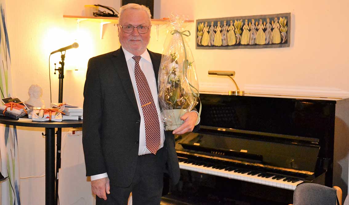 Men det hade nyligen skett en förändring i rummet. Där stod ett annat piano, ett blankt och fint. John-Erik och Silva ska flytta ifrån Hagshult och då ansåg de att pianot skall få också flytta, men inte med dem. Pianot skänkte de till Skillingaryds församling i Hagshult. Så kvällen till ära infall sig kyrkorådets ordförande Ulf Svenzon med en blomma och tackade John-Erik för sin stora generositet.