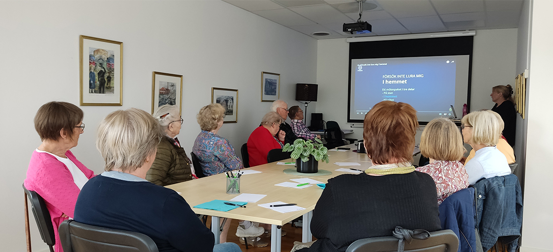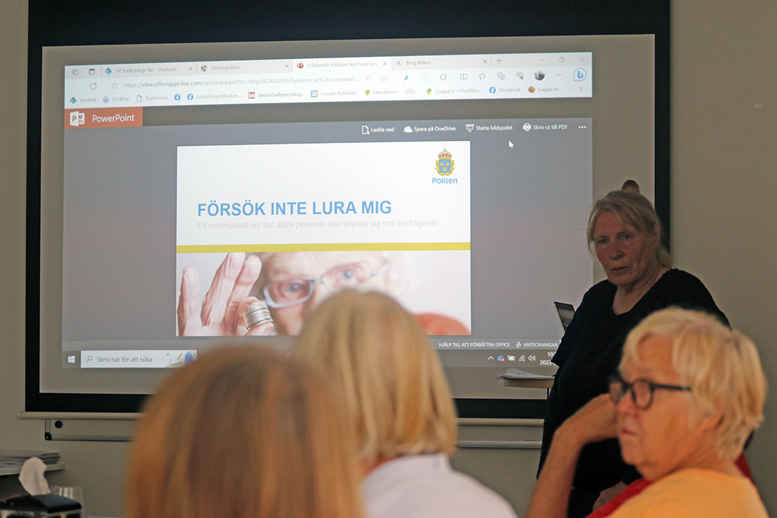 – Under 2022 anmäldes totalt 193 000 bedrägeribrott i Sverige. Över 16 000 bedrägeribrott anmäldes per månad och mer än 3 000 av dessa riktas mot äldre personer, det vill säga 19 procent. Av anmälda romans-, investerings- och befogenhetsbrott är 62 procent av de drabbade äldre. När man sitter så här i en grupp då vågar man berätta vad man varit utsatt för samtidigt som man ges verktyg och kunskaper för att kunna bromsa bedrägerier i framtiden, säger handledaren Marianne Blixt.