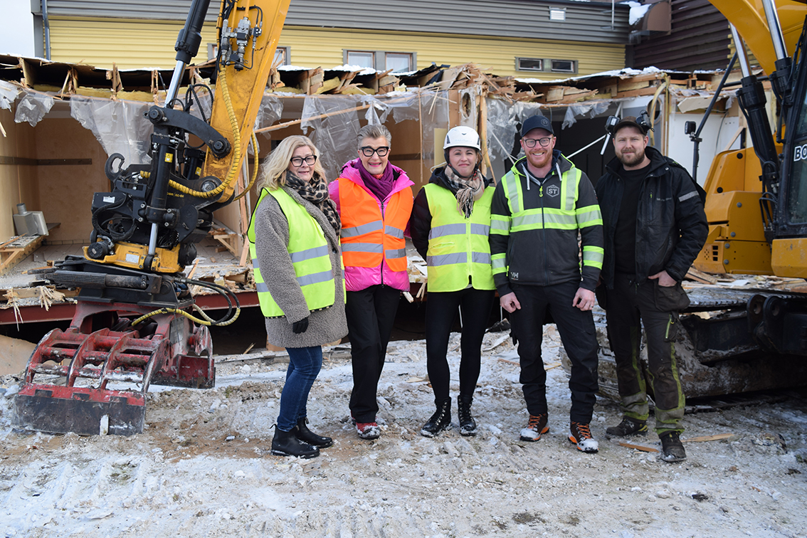 På plats är Ulrika Juul, Carina Remnemark och Lena Norgren, för att bevittna ytterligare en milstolpe i föreningens historia. – Jag säger äntligen rivs det här utdömda, svartmögliga, oanvända och äntligen är Gustav här och sätter skopan i byggnaden. I dag är startskottet rent praktiskt. Här är en byggarbetsplats och Fredrik har varit här och skyddat området för det är säkert många som är nyfikna, berättar Carina och fortsätter: