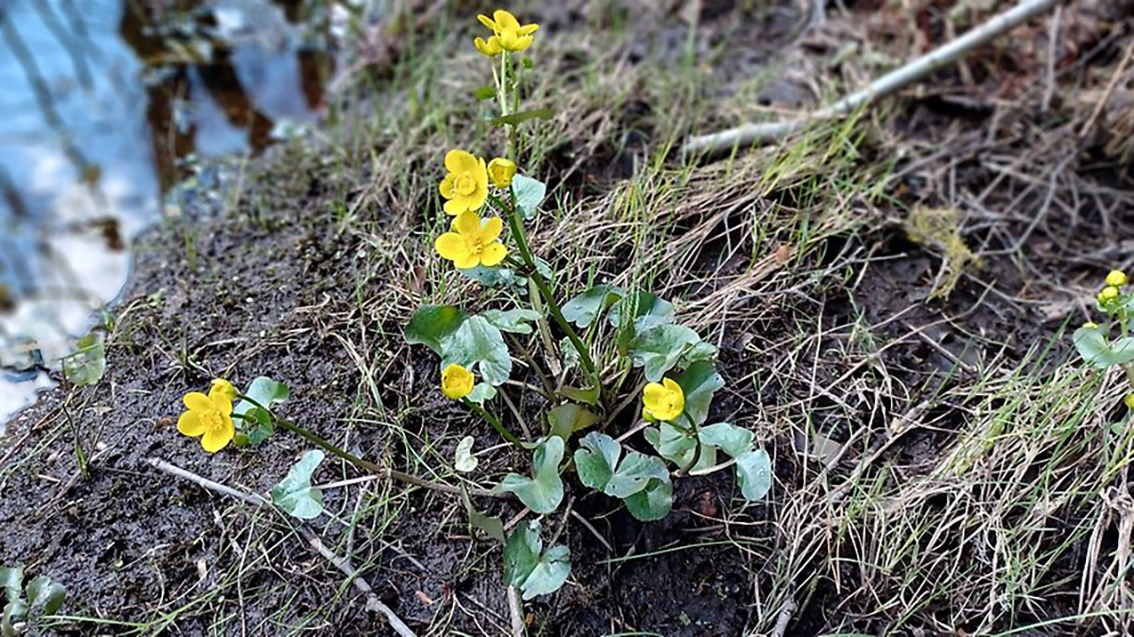Vid vindskyddet och det nyuppförda bordet med sittbrädor under tak, tog vi rast i det ljumma vårvädret. Lagan var välfylld med sakta rinnande vatten till kabbelekornas glädje. Det medhavda kaffet kom snabbt upp ur alla ryggsäckaa och inmundigades till stilla fågelkvitter. En riktig ”vårsmocka” likt mediernas flitigt använda väderbeskrivningar som ”snösmocka” och ”köldsmocka”.