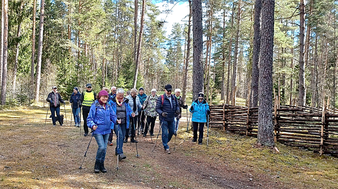 När Aurora behövde Friluftsgården som bas under den stora militärövningen, bestämde sig stavgångsgänget för att flytta sin tisdagsvandring till Östermo-skogen.