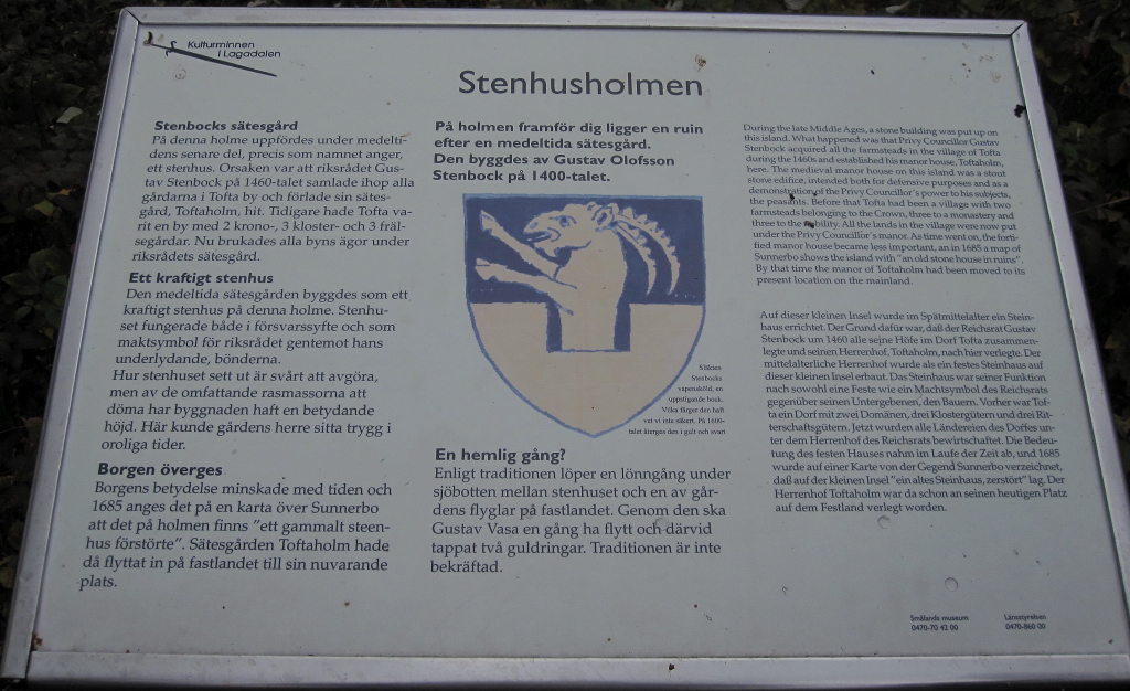 Stenhusholmen och kulturlandskapet vid Toftaholm, en natur- och kulturkrönika i 14 bilder om historiska platser mellan Värnamo och Ljungby där bland andra Gustav Olofsson Stenbock härskade på 1400-talet.