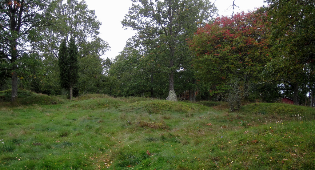 Ytterligare en bild från gravfältet från yngre järnåldern, en tid som vi kallar vikingatiden, som består av över hundra gravar och har fungerat som gravplats för en mindre by eller gård.