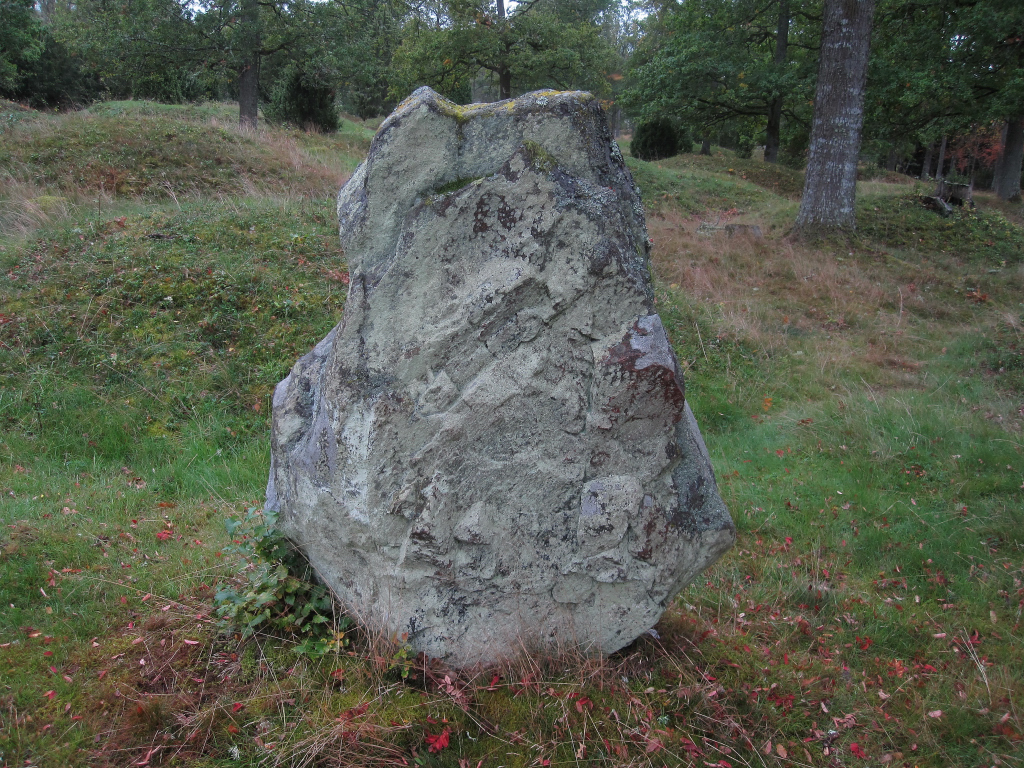 Lägg märke till den resta stenen i mitten som tyder på att det folk som levde här var kristnade under vikingatiden.