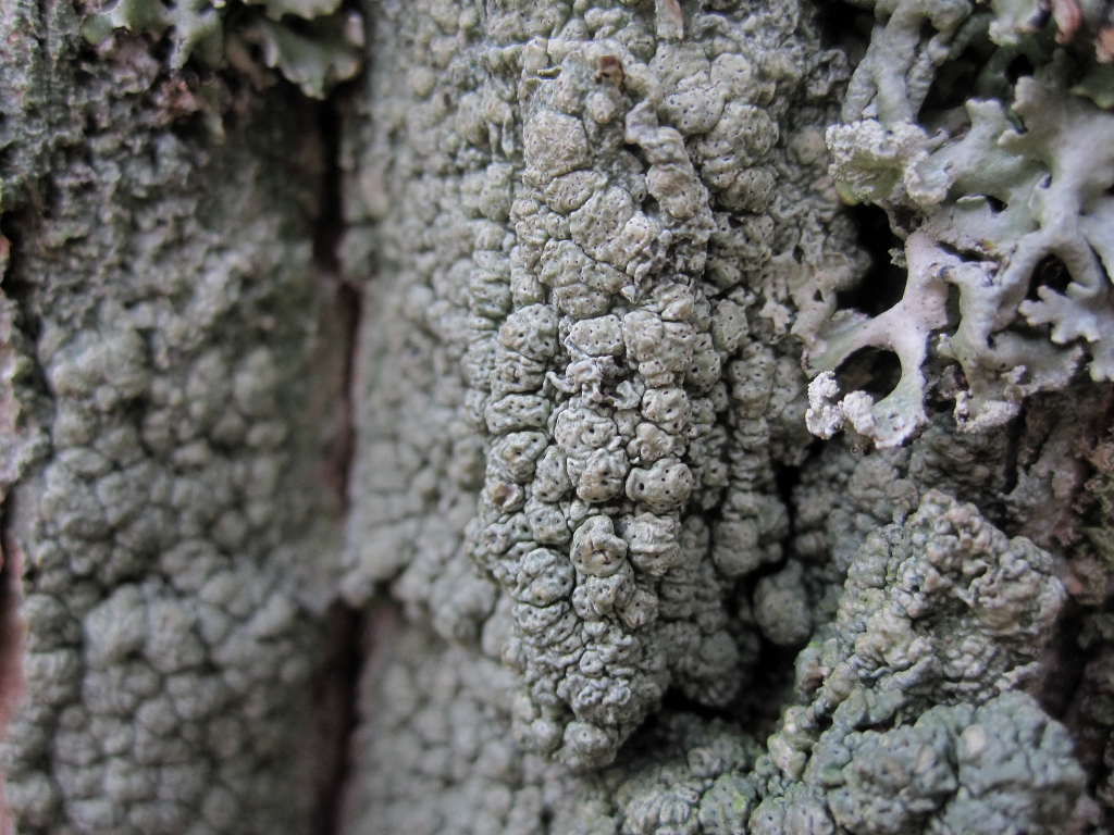 Den avslutande bilden visar en lavart som heter porlav, ”Pertusaria pertusa”, och som är en organism där svampar sammanlever med alger eller cyanobakterier och utvecklar busk-, blad- eller skorplika växtformer.