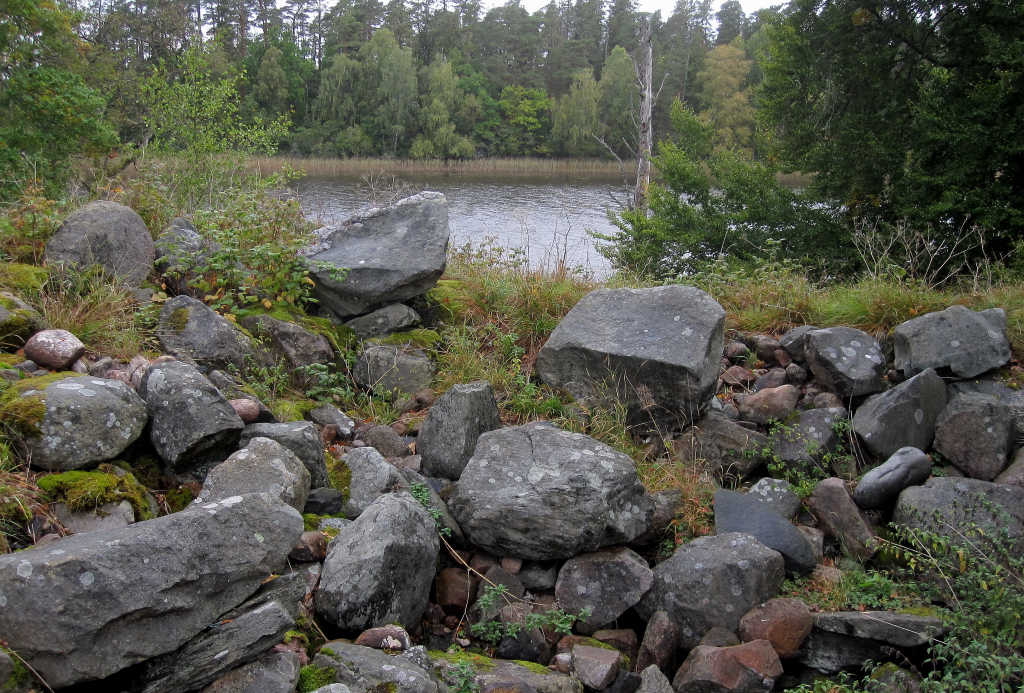 Bilden är tagen från stenhuset mot väster och visar Långö i bakgrunden och sjön är naturligtvis fortfarande Vidöstern.