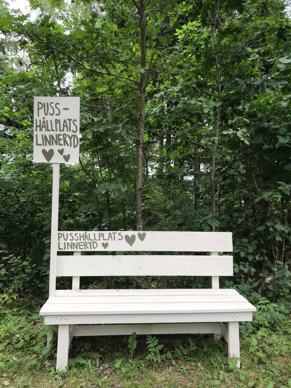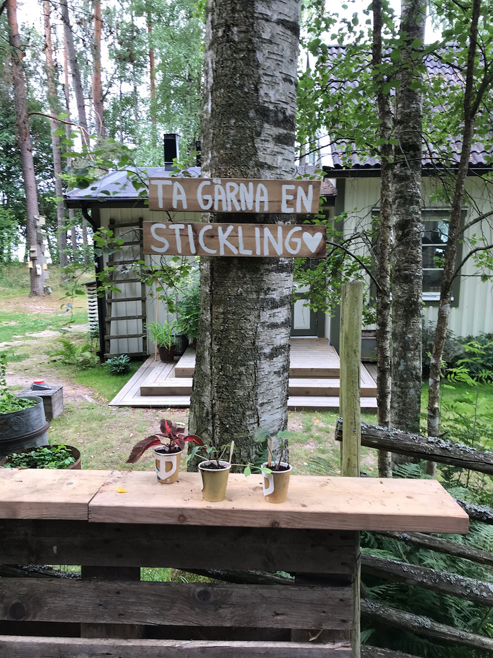 Längs Linnesjön i Tofteryd har ett sticklingsbord dykt upp vid pussbänken. "Visst blir man glad", hälsar Kerstin Nilsson