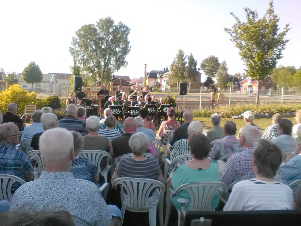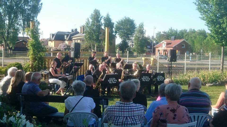Parken intill Magnisastugan i Vaggeryd blev fullsatt när ett 80-tal kom för att lyssna på Gota Stream Big Band.