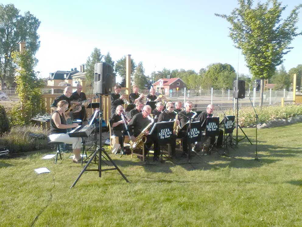 Ett kulturevenemang med fler i publiken än på scenen! Gota Stream Big Band spelade i samarbete med Museiföreningen inför ett åttital åhörare i Magnisaparken.