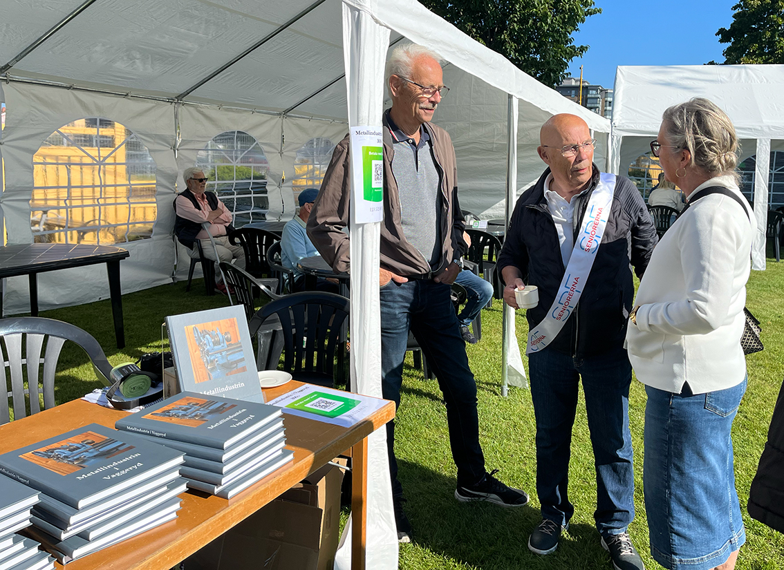 Strålande väder, fantastisk tillströmning av människor och fin bokförsäljning, så kan man sammanfatta lördagens evenemang i järnvägsparken. Utanför stugan såldes för första gången boken ”Metallindustrin i Vaggeryd” och inne i stugan var det teckningsutställning med teckningar från en tävling som gjordes 1961 som handlade om ”Mitt sparmål”.