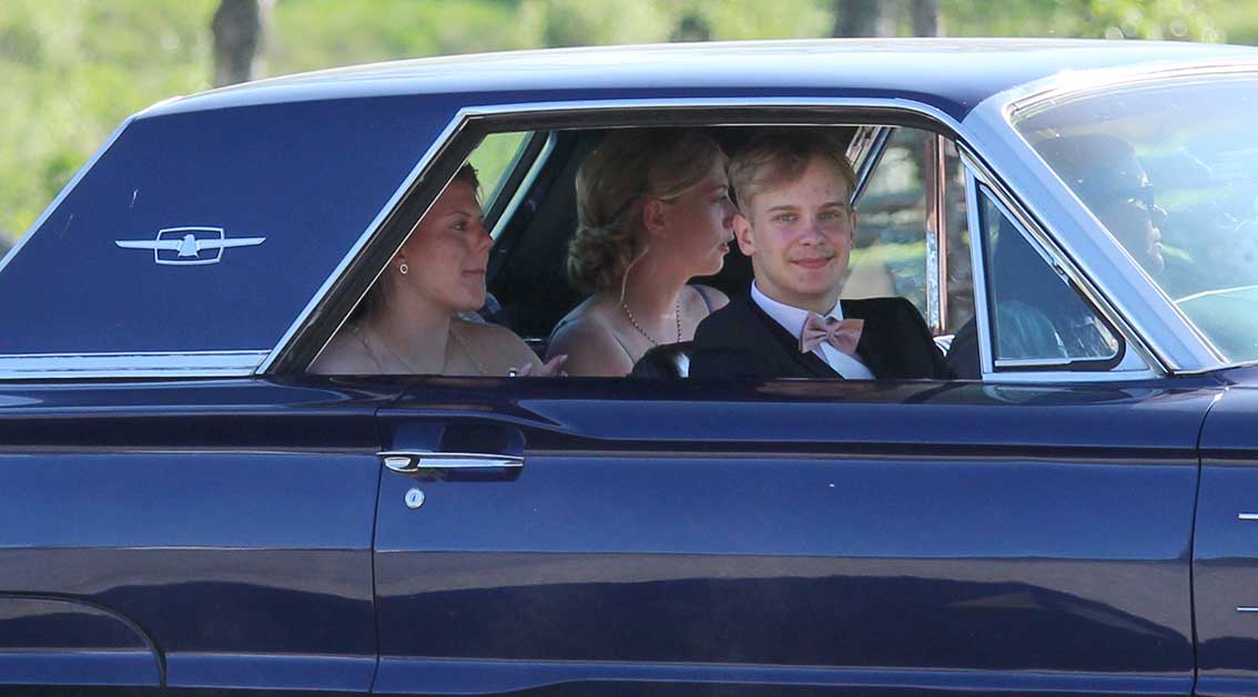 Anna Gustavsson, Gislaved, Lydia Rylander, Lammhult och Sebastian Veinfors, Mariannelund var tre av dem som arrangerade och bil efter bil med blivande studenter rullade in i tjusiga bilar till PO:S Lada utanför Skillingaryd.