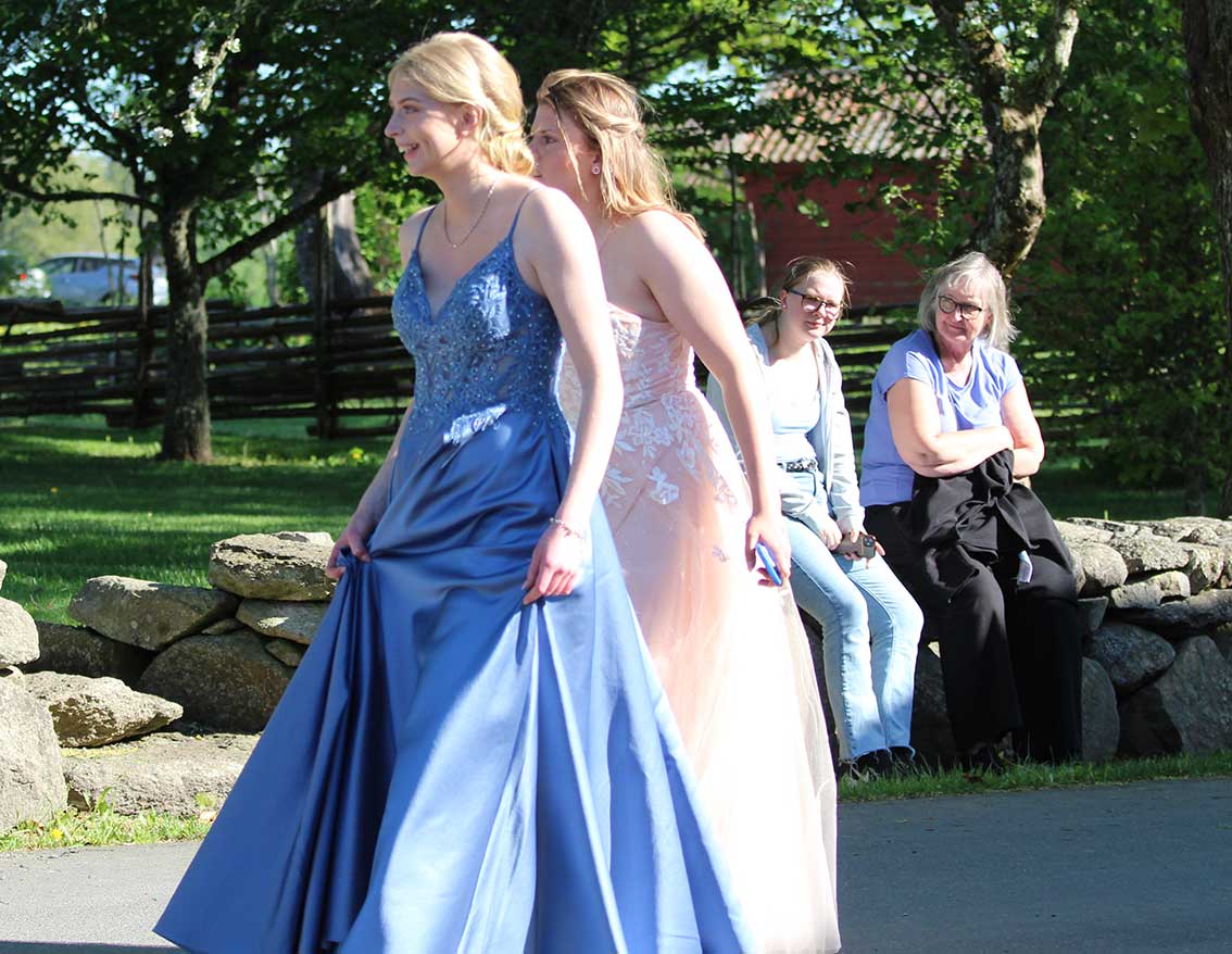 Eleverna på Stora Segerstad Naturbrukscentrum utanför Reftele hade först samling på skolan med föräldrar och många fler på plats för att skåda de stiliga studenterna.