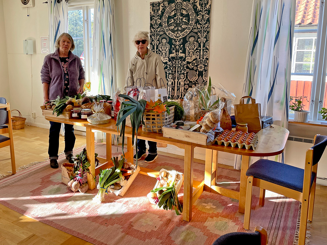 Ett varmt tack till alla som så generöst skänkt dessa fina alster och de som så hjärtligt bjöd på dem. Som Cristina Virdung sa i sin predikan tacksamhet till alla som odlat, skördat, skänkt och köpt.