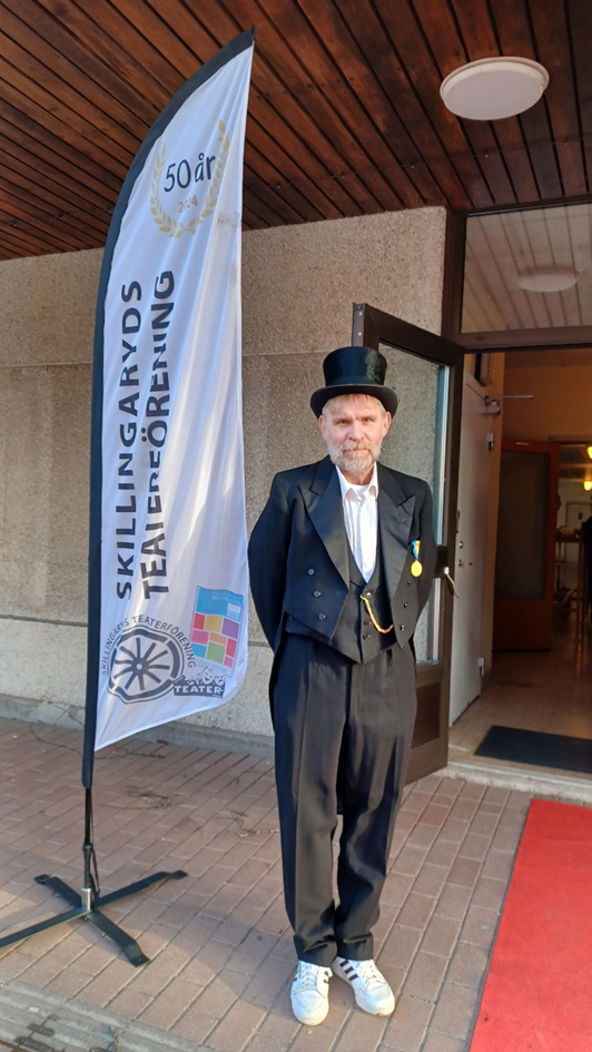 Teaterföreningens styrelse avslutade kvällen med att äntra scenen, dagen till ära uppklädda i eleganta festkläder, som vanligt ur Vivianne Nöjdhs stora revy-förråd. Ordförande Lotta Storck tackade publiken för stödet till föreningen genom att besöka föreställningarna. Då även teatersalongen kommer att vara stängd under renoveringen av Skillingehus, kommer föreställningarna att äga rum på Centrum (Folkets Hus) och Fenix 2 i Vaggeryd, som det ser ut nu. Hösten kommer att bjuda på Schtunk 123 ”Scener ur ett äktenskap”, ”Violetta” och ”Hebbe family”. Mycket välkomna då!