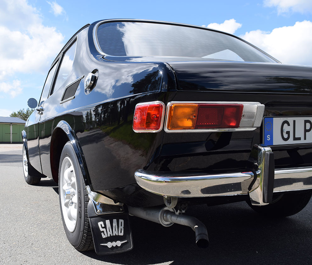 – Vi köpte bilen 2012 och har väl egentligen jobbat med den i tio års tid. När vi köpte den var inredningen sunkig och ägarnas barn hade hoppat på taken. Bilen hade gått i Norrland och det fanns en folkraceplan för 99:an, men den blev stående på en loge. Det som var bra med den här bilen var att det var väldigt lite rost. Det här är den första årsmodellen som såldes och den är nu renoverad till originalskick. Finn har läst ut att det nu finns 25 stycken Saab 99 av årsmodell 1969 i trafik. Så vitt vi kunnat utläsa finns ingen av dessa som är svart, vilket är originalfärgen. Ovanlig, men väldigt snygg, säger Mats Bergman när vi träffas i garaget på norr i Skillingaryd.
