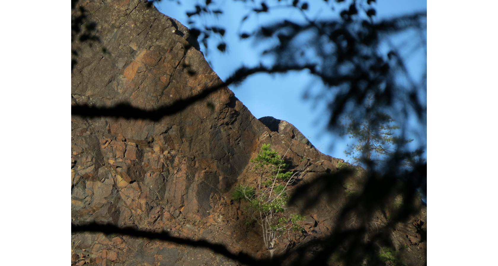 Det stängsel på bergets topp som skulle beteckna gränsen af bråddjupet, befanns vid en del däraf, undergräfd af ras eller af sprängning, så att en liten omkrets af ungefär en half aln, visade en öfver bråddjupet sväfvande jordbit beväxt med gräs.